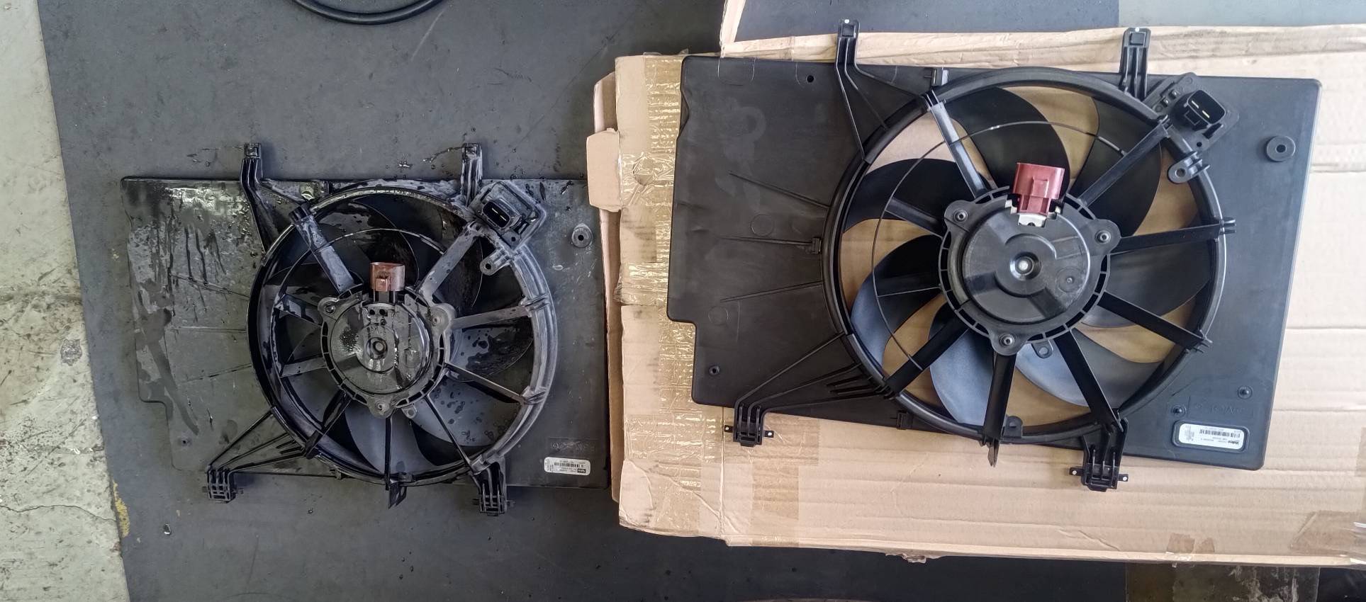 給車主說明了情況,車主同意更換水風扇。新風扇到貨,和舊風扇對比,新舊差異明顯: