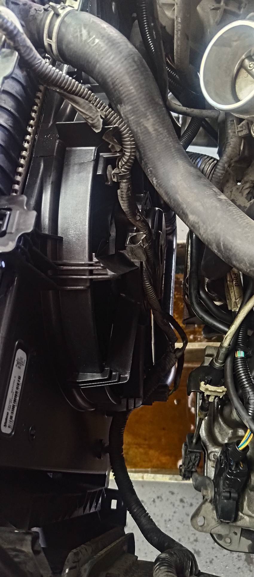 換上了新的冷凝器風扇,安裝好後啟動車輛,打開空調,風扇順利運轉起來。安裝好的新風扇在引擎艙內的狀態: