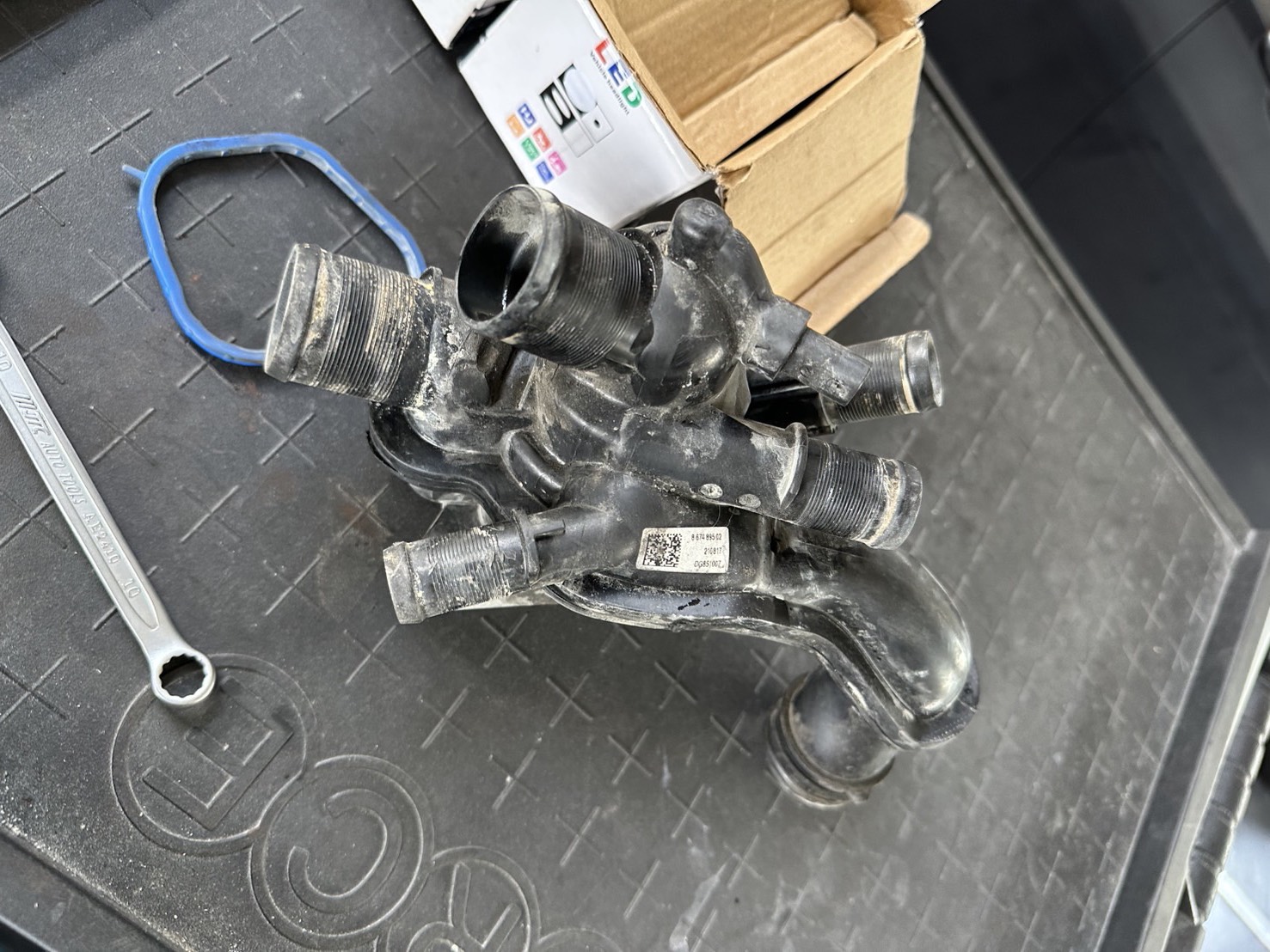 2. 外觀排查:檢查水管介面(粉色冷卻液壺附近管路),若有滲漏痕跡,結合舊節溫器表面水垢,判斷密封失效;