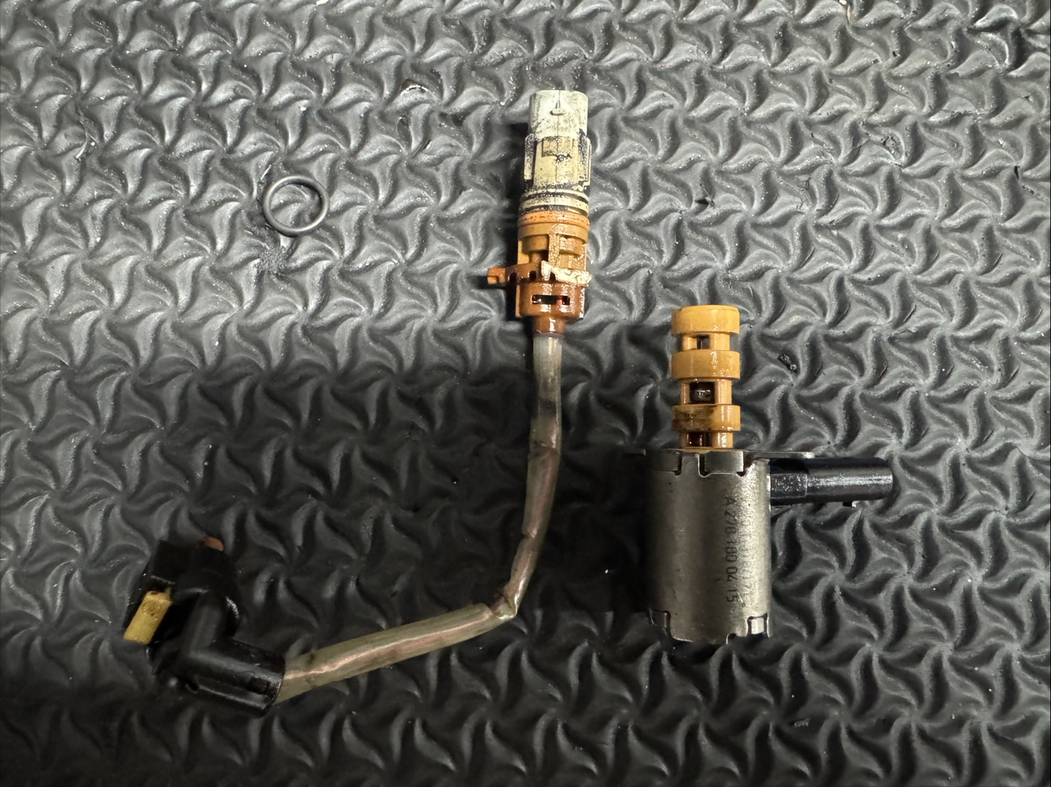 圖:拆卸下來的舊機油幫浦電磁閥與老化線組,零件老化受損狀態一目了然